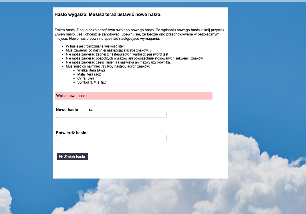 1. Zmiana wygasłego lub tymczasowego hasła